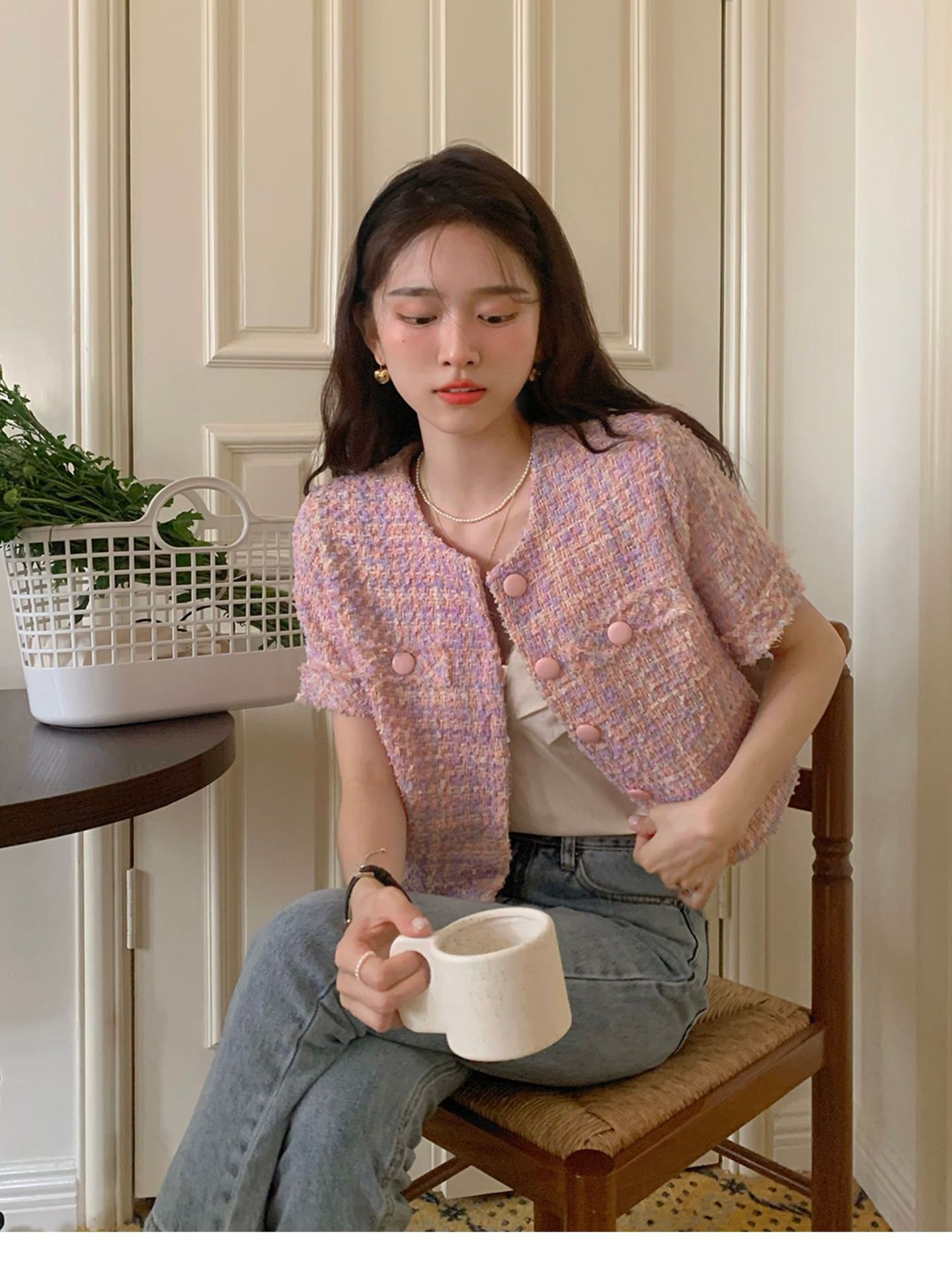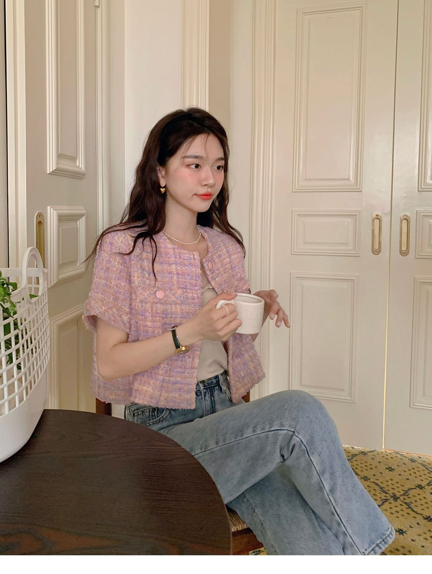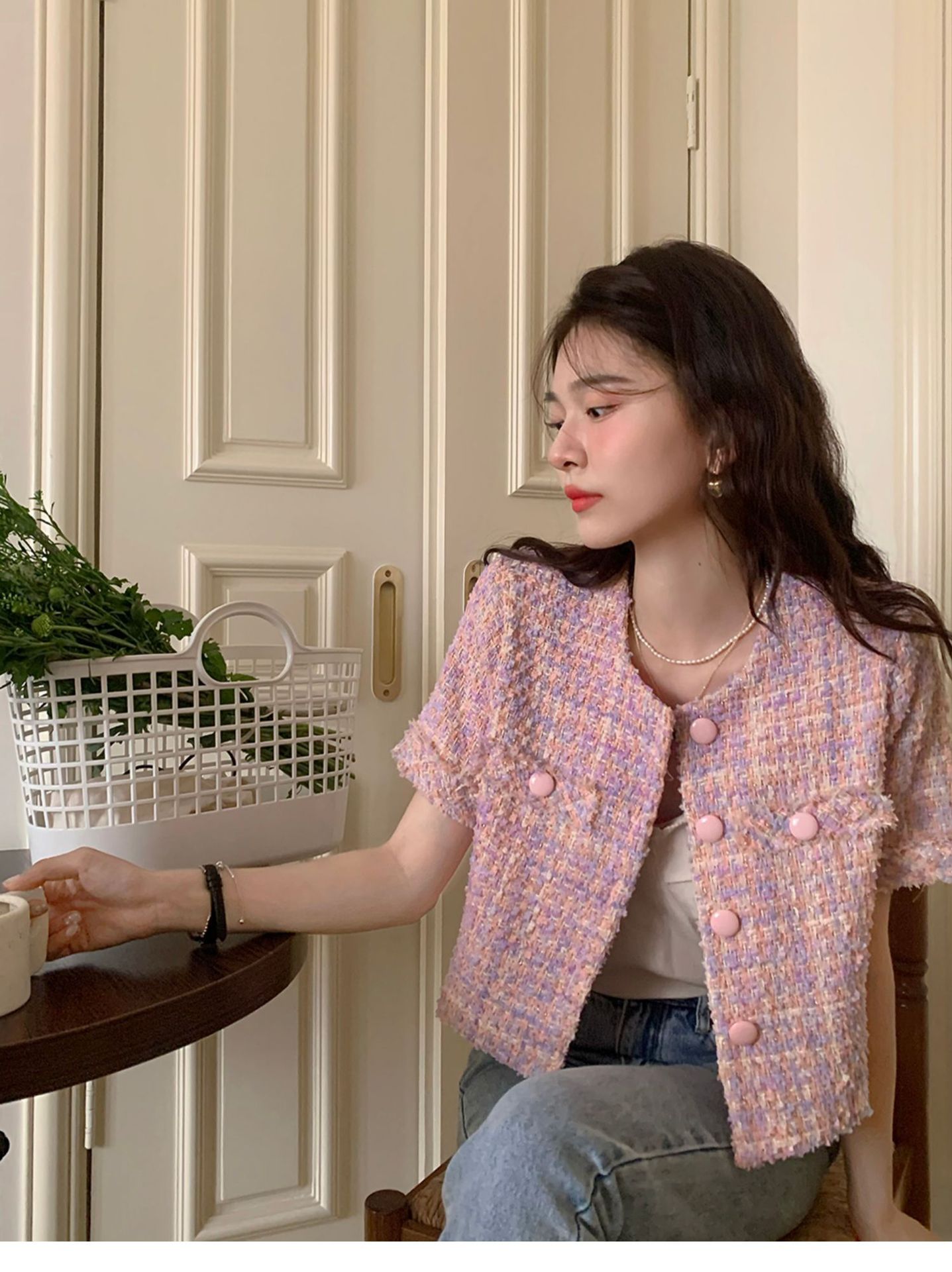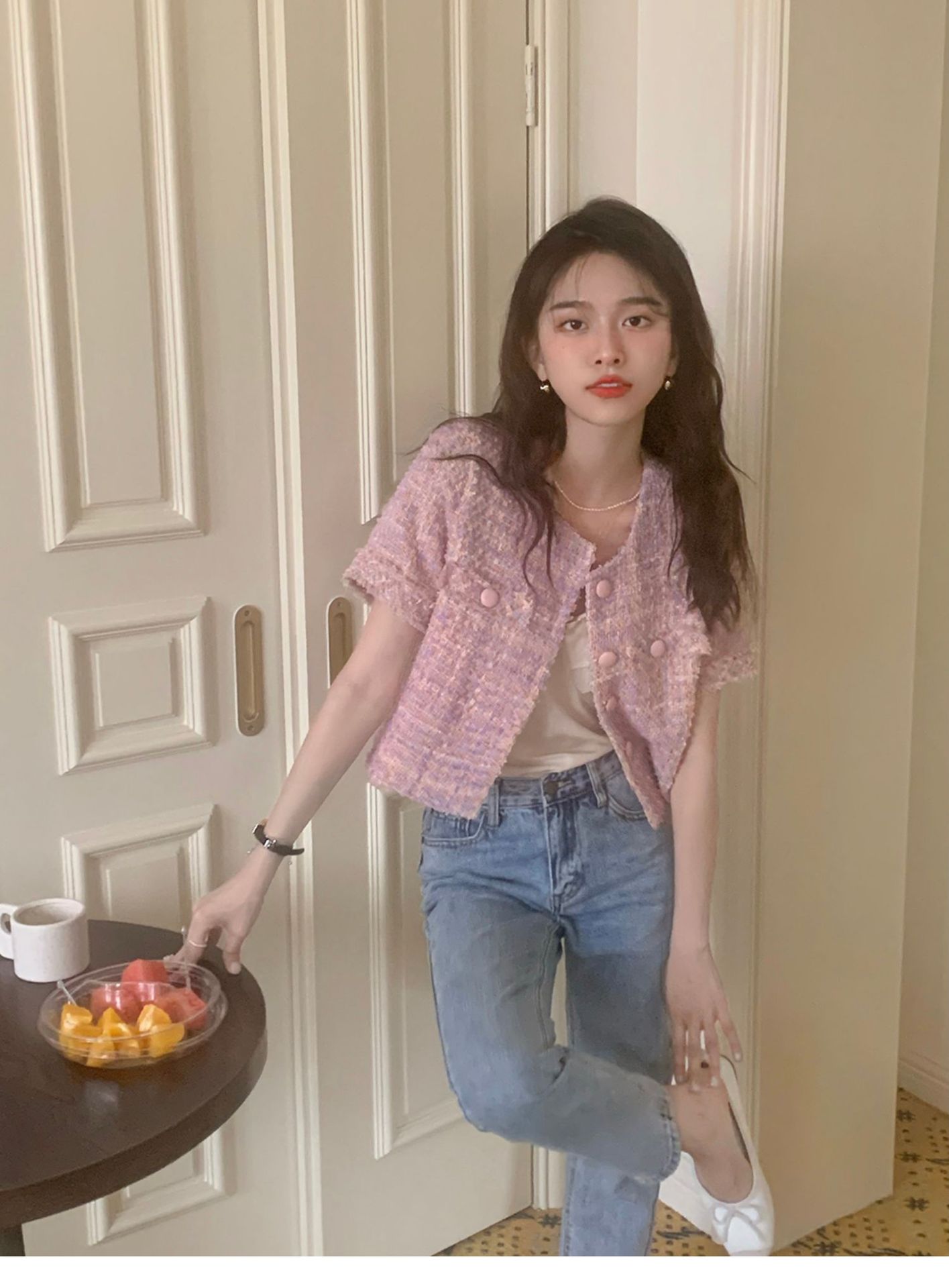 High-grade Round Neck Korean Gentle Short Sleeve Jacket