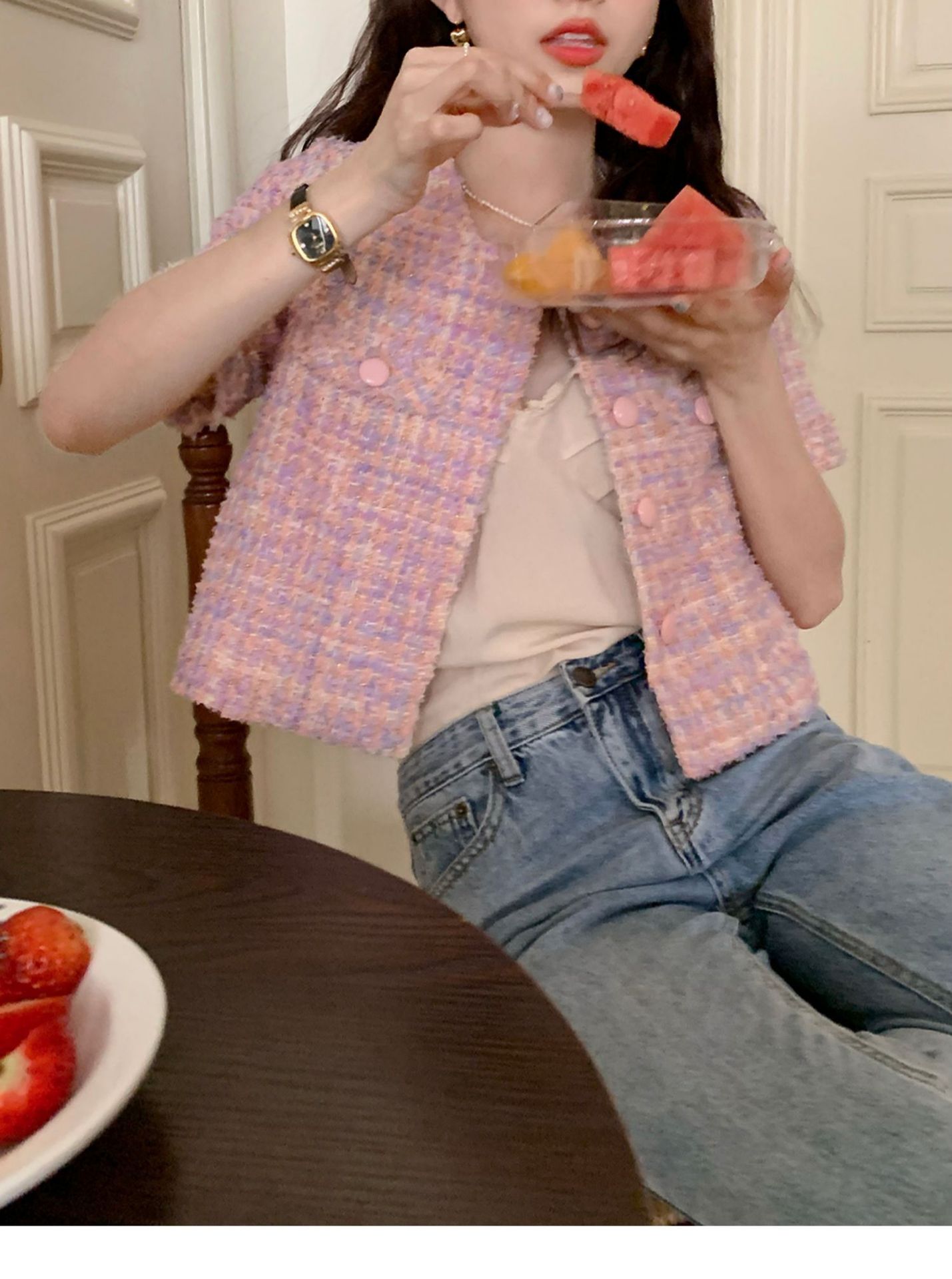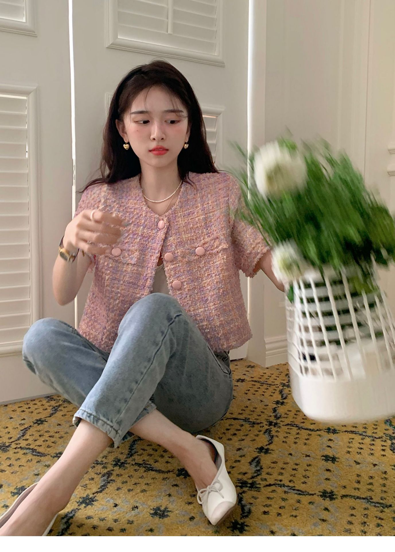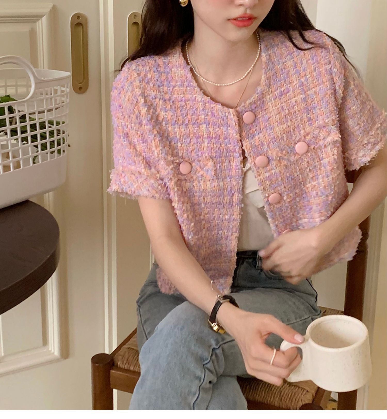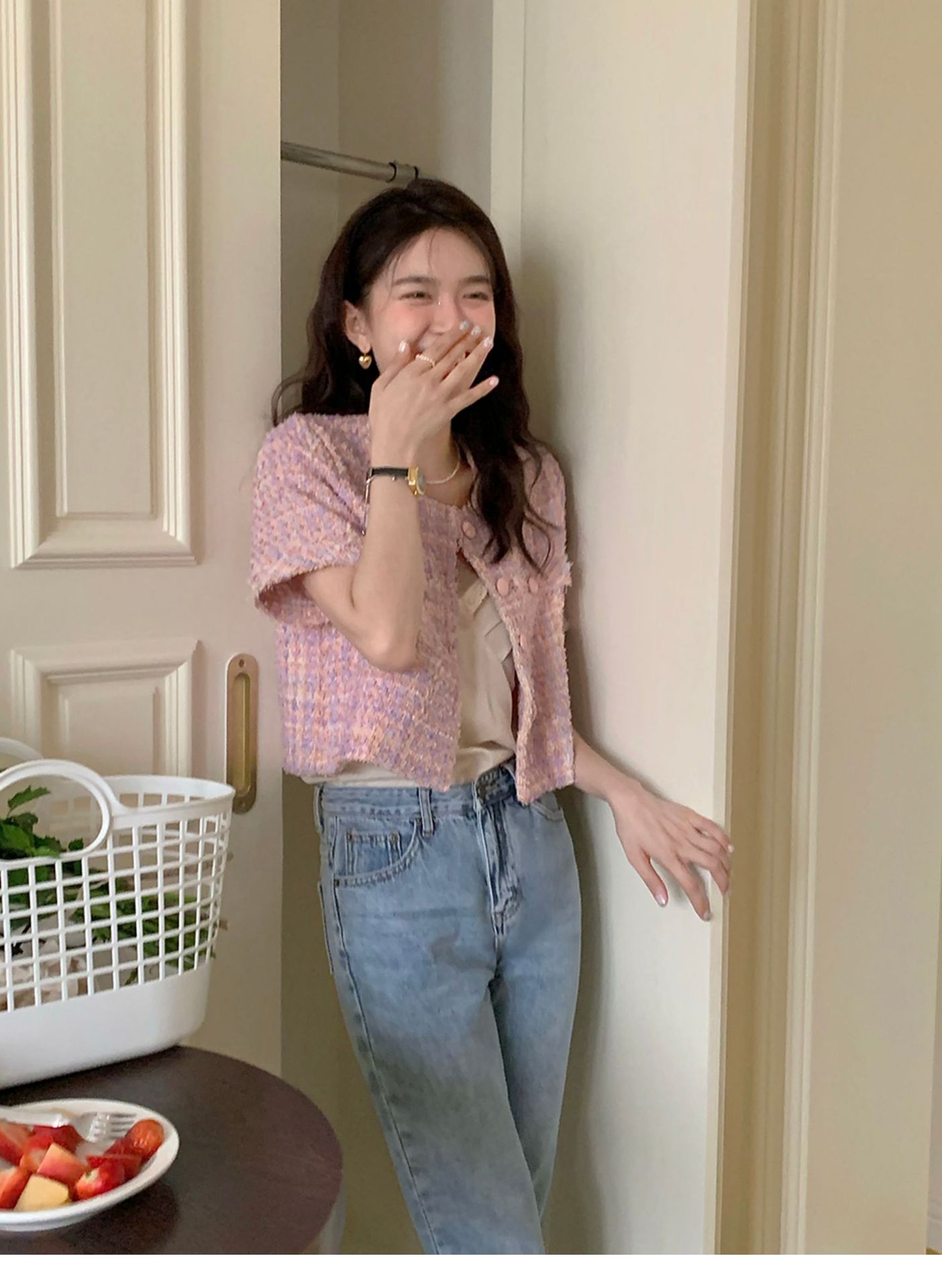 High-grade Round Neck Korean Gentle Short Sleeve Jacket