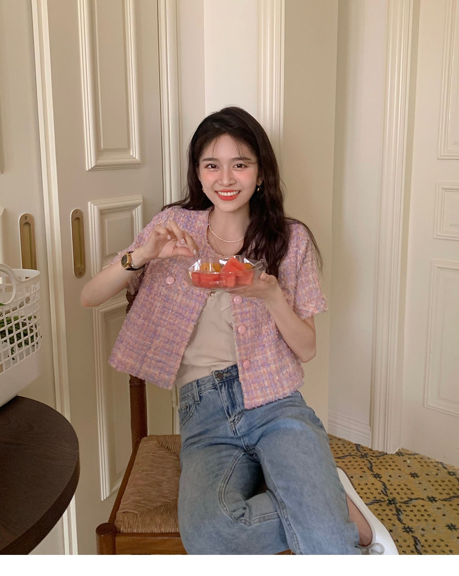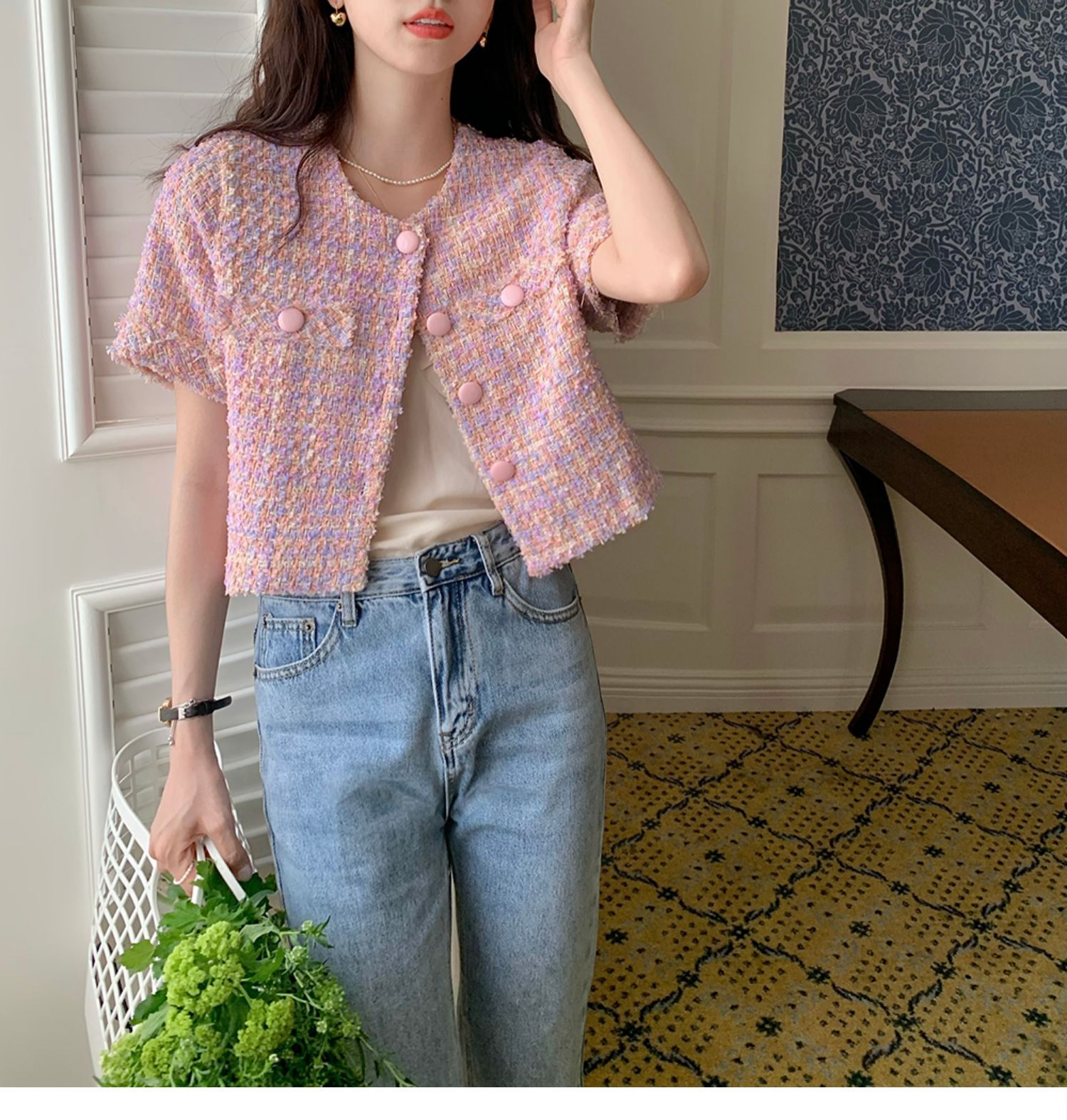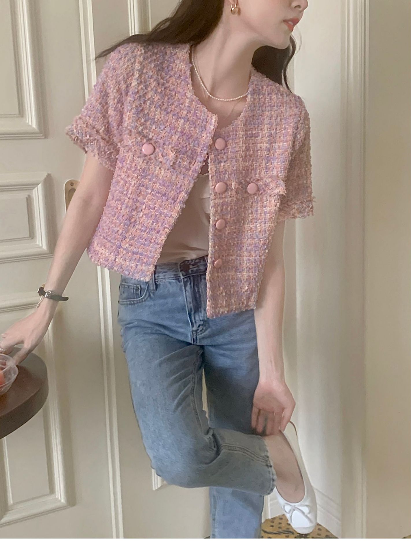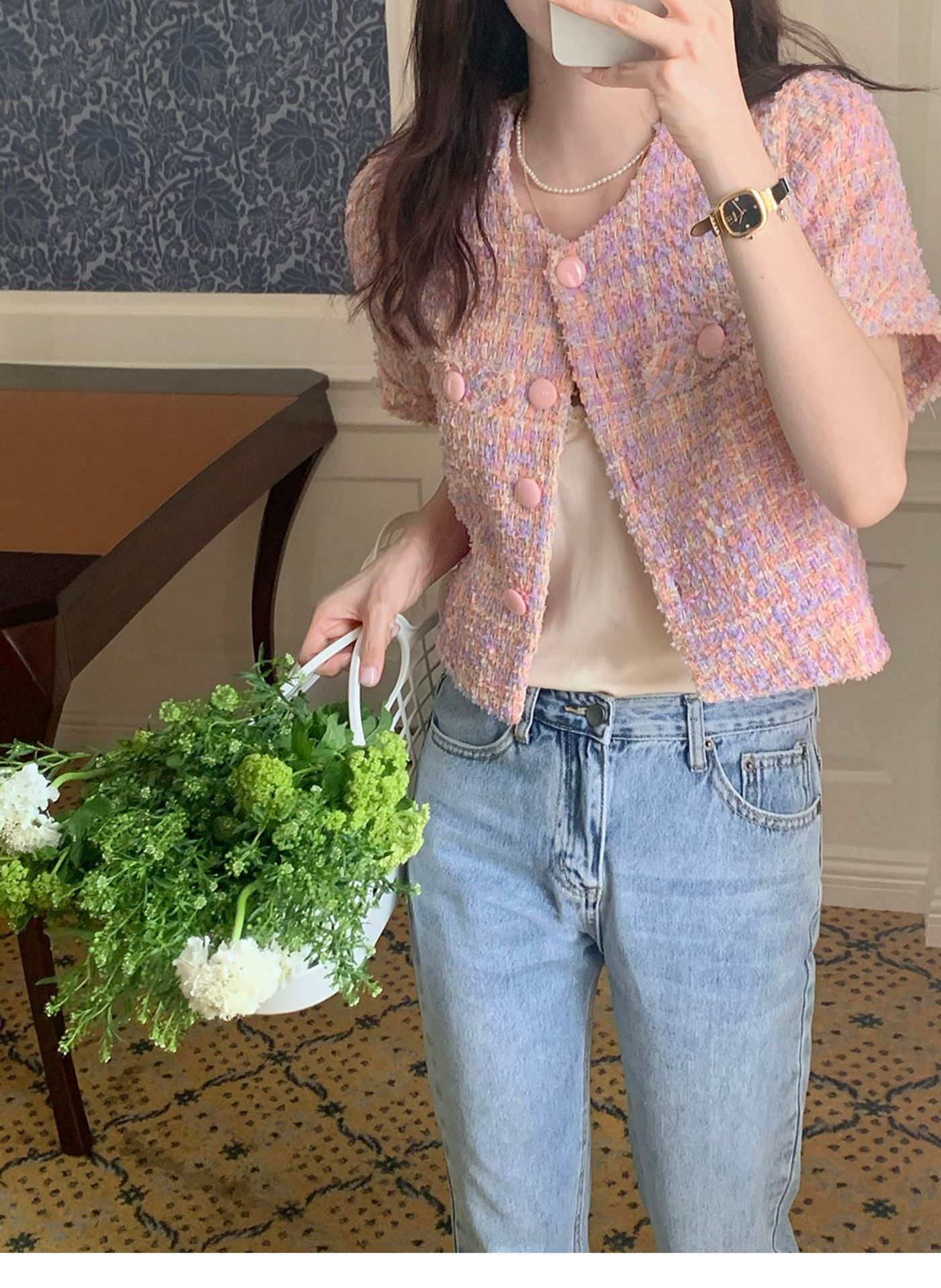 High-grade Round Neck Korean Gentle Short Sleeve Jacket