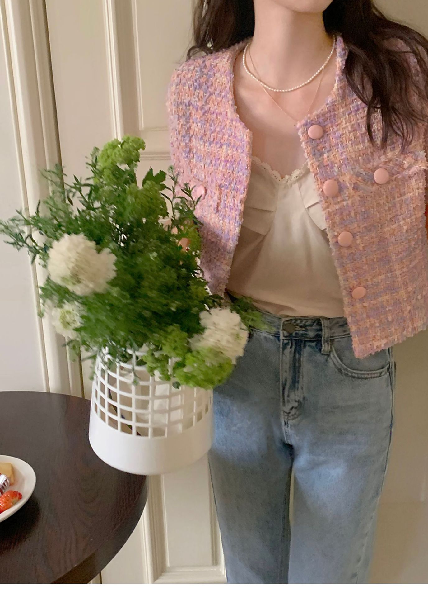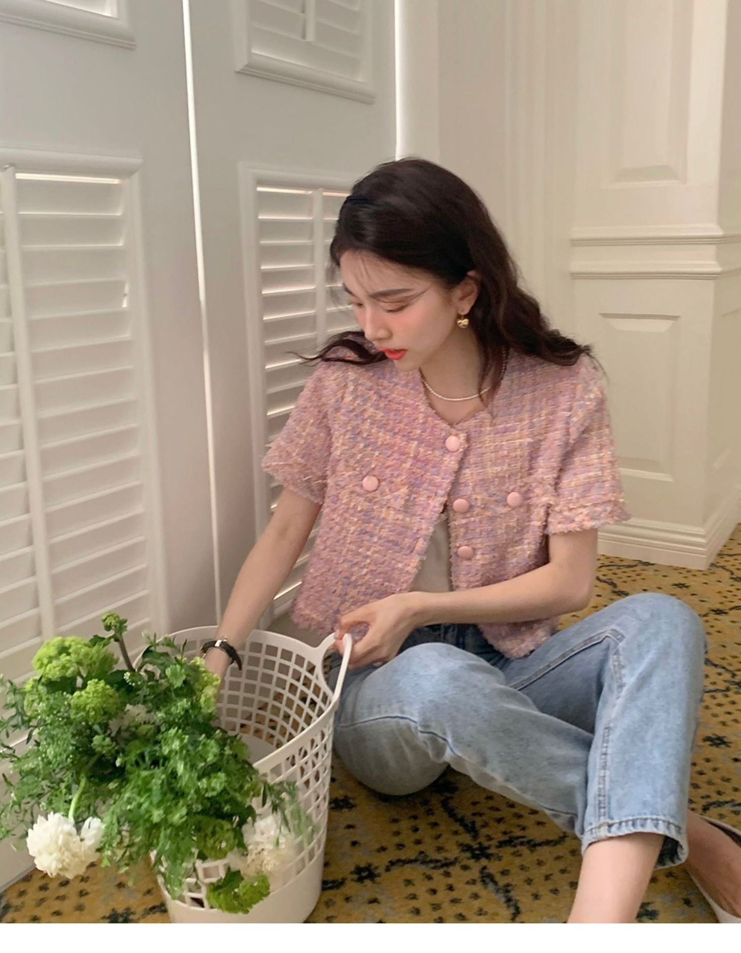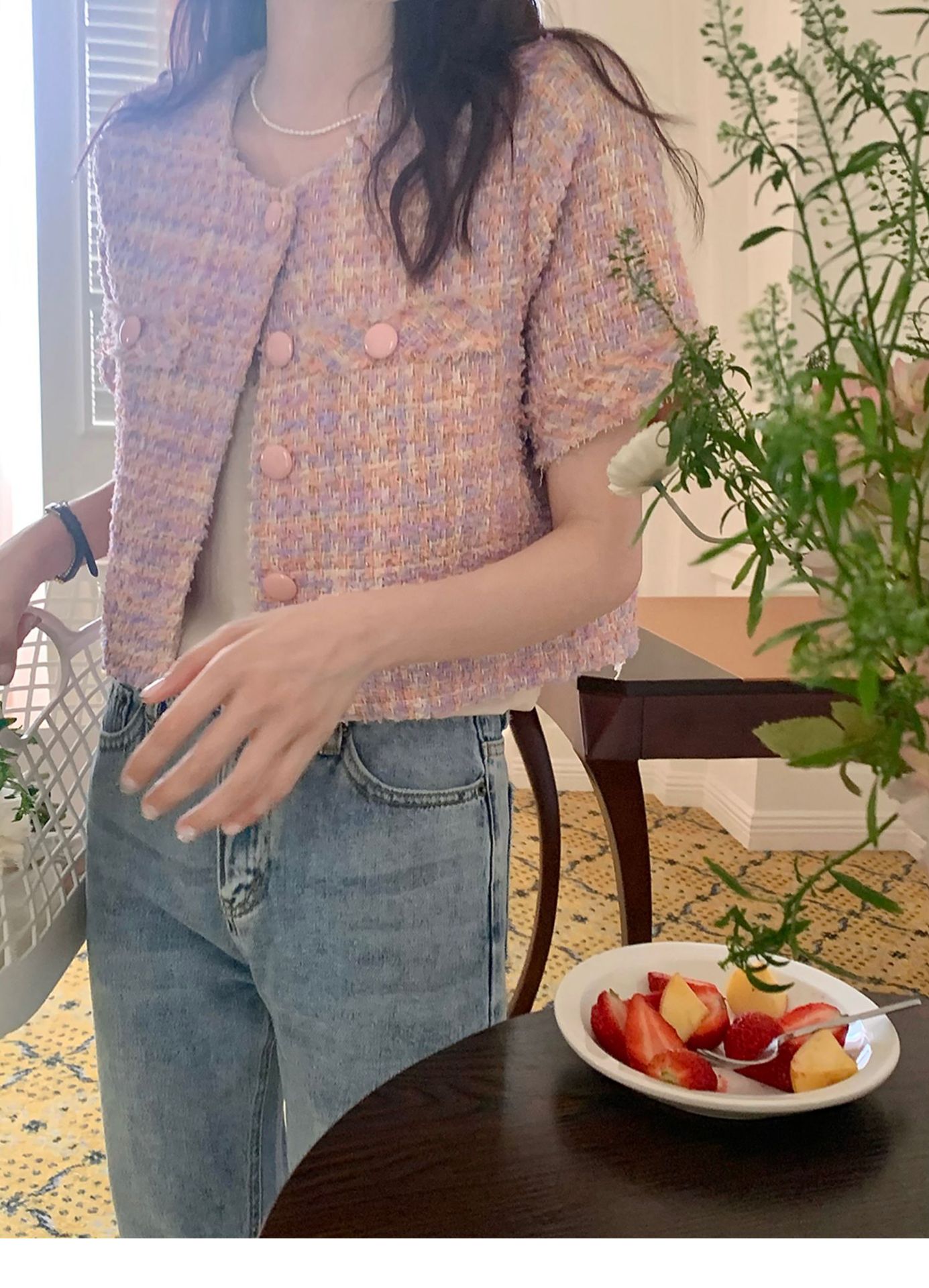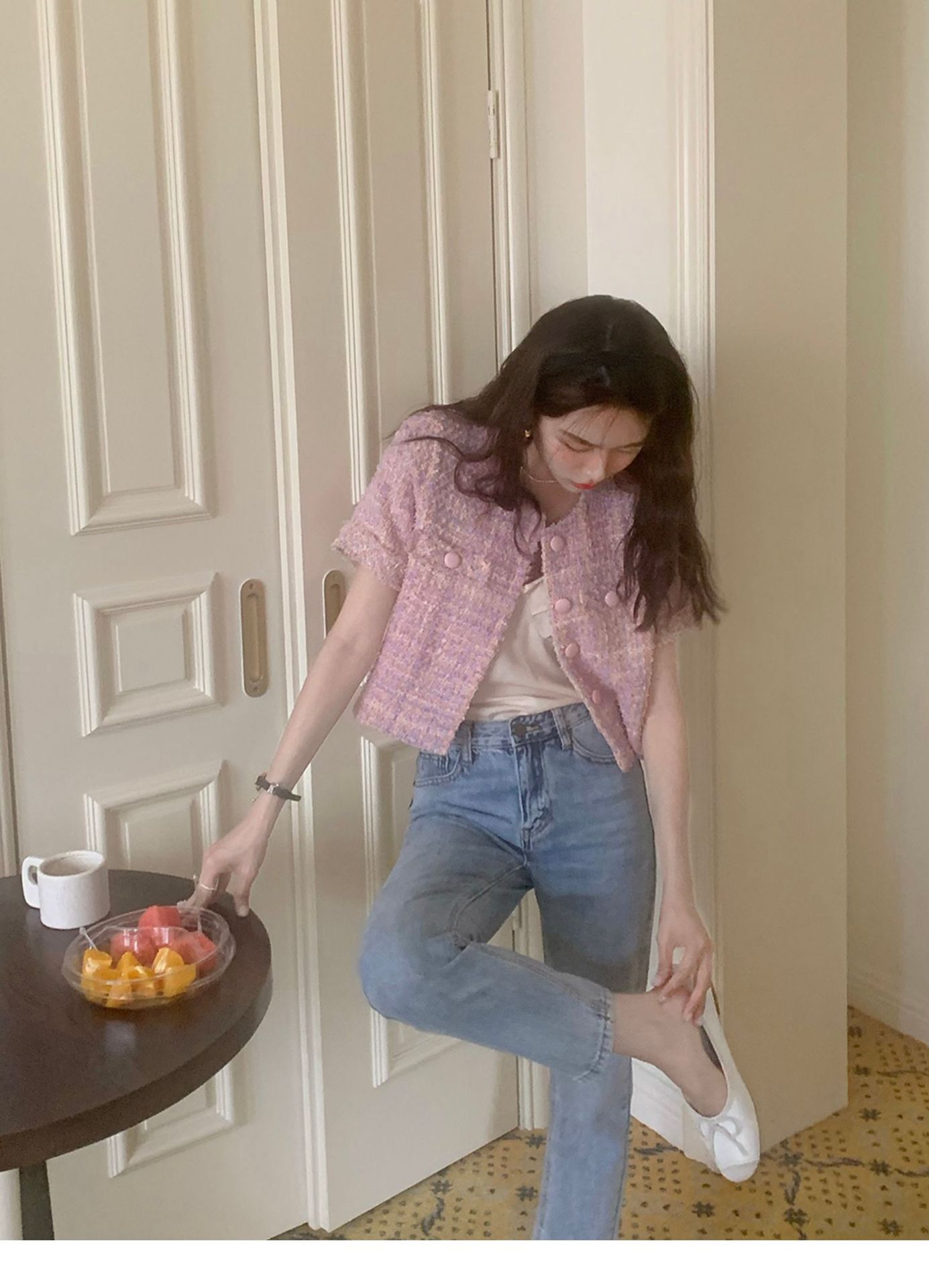 High-grade Round Neck Korean Gentle Short Sleeve Jacket