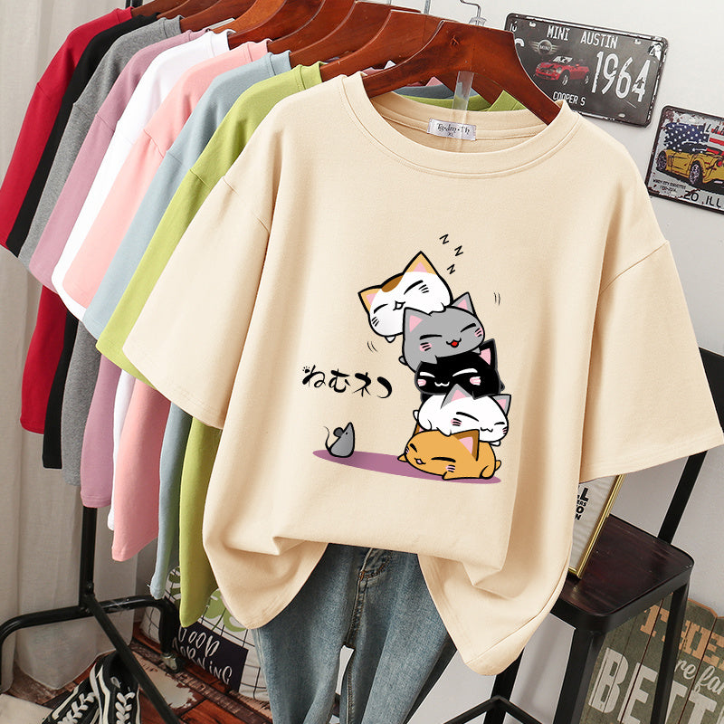 New Summer Slimming Plus Size Loose Half Sleeve V-neck Western Style Top